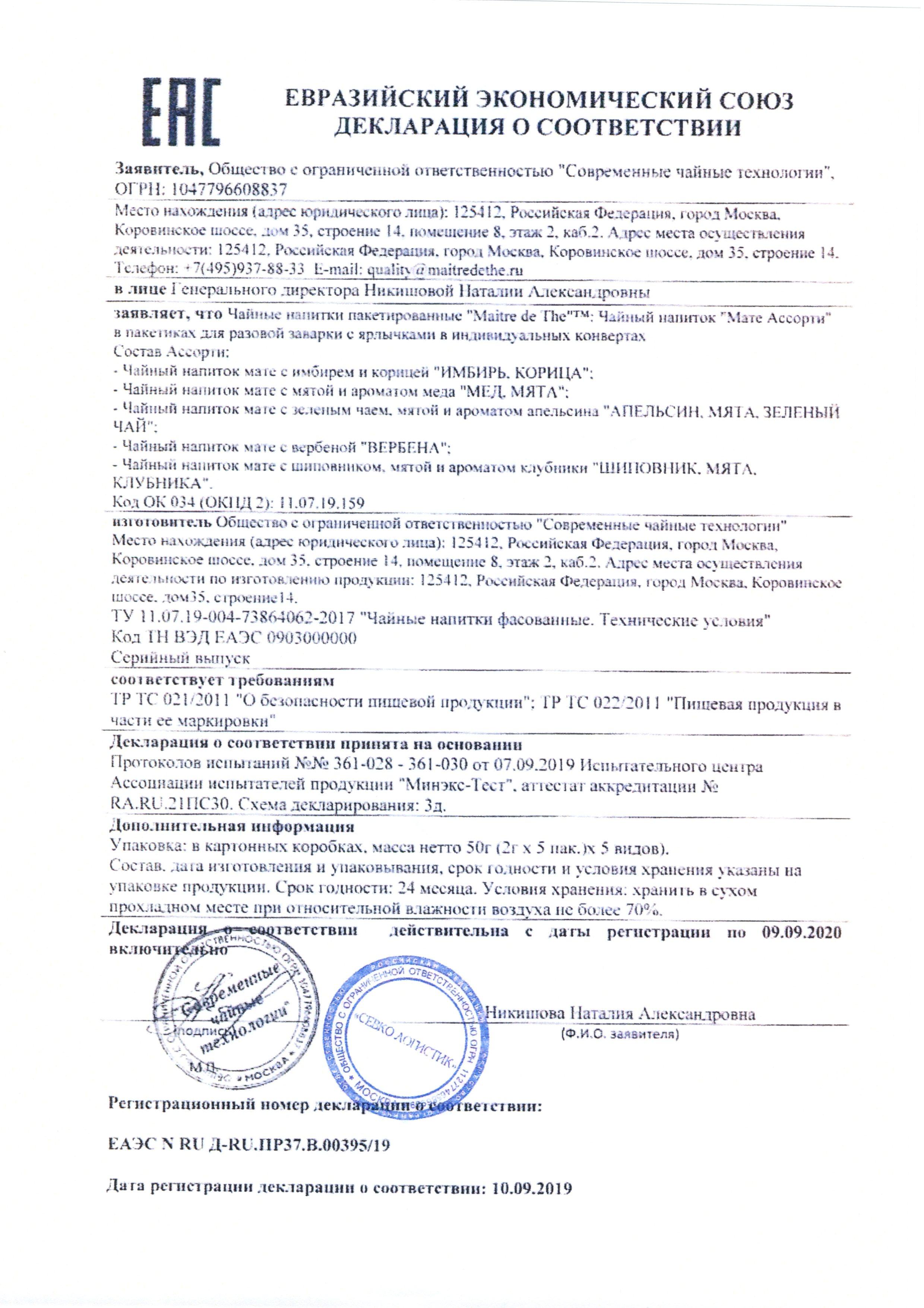 Великолепное ассорти Maitre Матэ займет достойное место в чайной коллекции тех, кто ценит силу природы, любит ее ароматы и с удовольствием наслаждается чистыми, первозданными вкусами.