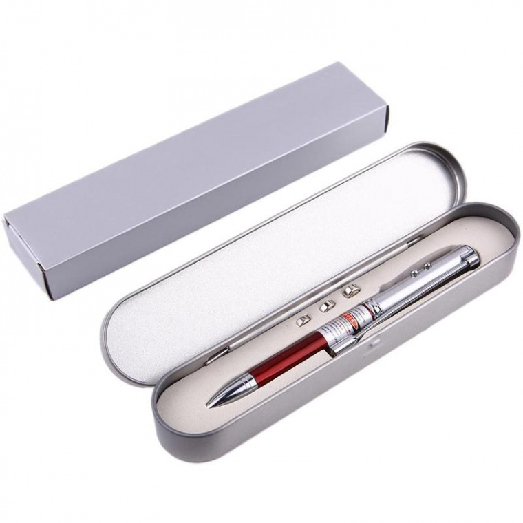 Поставляется в подарочном футляре, с элементами питания типа LR 41 в комплекте(3шт.). Мощностью 5 mw.