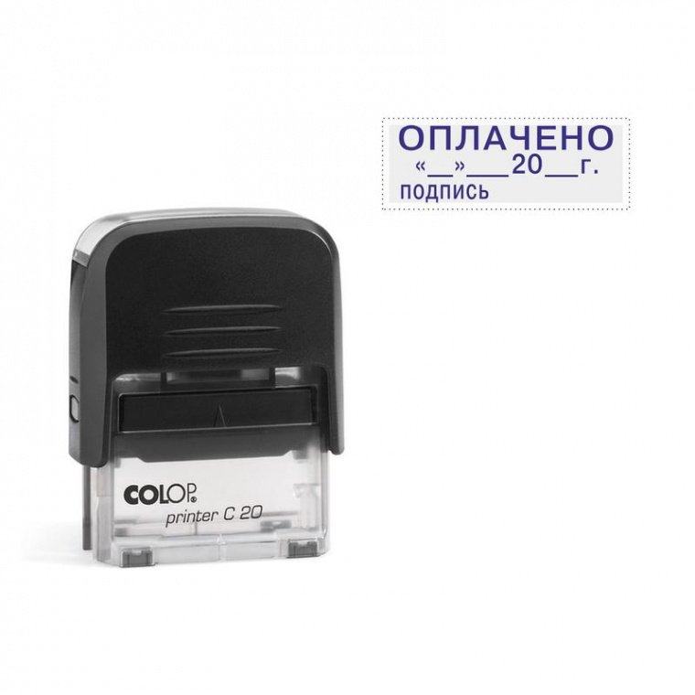 Штамп стандартный Colop Printer C20 3.12 позволяет получить оттиск со словом «Оплачено», полем для даты и подписи. Выполнен в современном дизайне. Компактный надежный пластиковый корпус с поворотным окрашивающим механизмом. Размер оттиска — 38×14 мм. Прозрачное основание позволяет удобно и точно размещать штамп на документах. Цвет оснастки в ассортименте.