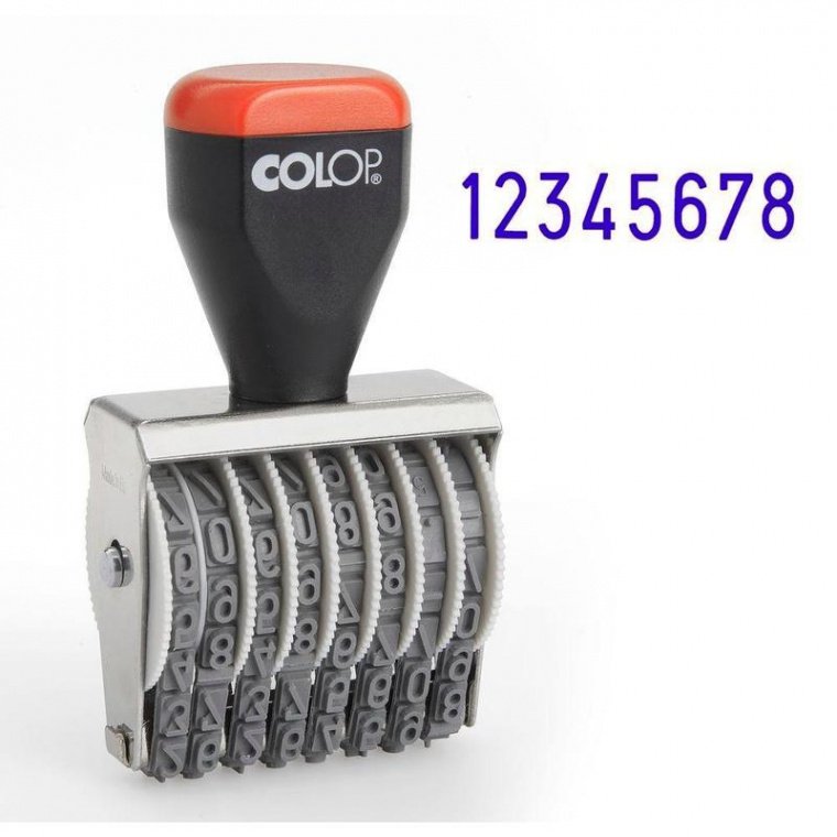 8-ми разрядный. Удобная рукоятка, металлический корпус. Для получения оттиска предварительно окрашиваются при помощи настольной штемпельной подушки. Используются для нумерации документов, проставления артикулов на товарах. Номер устанавливается вручную с помощью колесиков. Оттиск однострочный. Высота шрифта — 5 мм. Ширина шрифта — 2 мм.