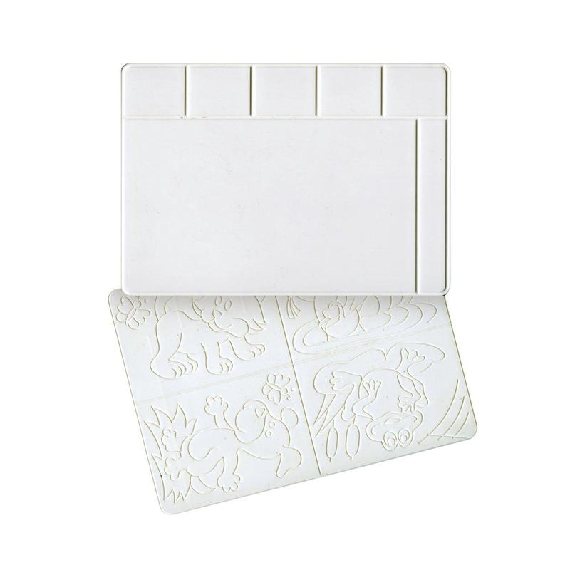 Формат А4,с разделительными ячейками для пластилина, с рельефными трафаретами. Доска изготовлена из полимерного пластика, он удобен при нанесении на него пластилина: снимается пластилин легко, но держится на доске достаточно крепко.