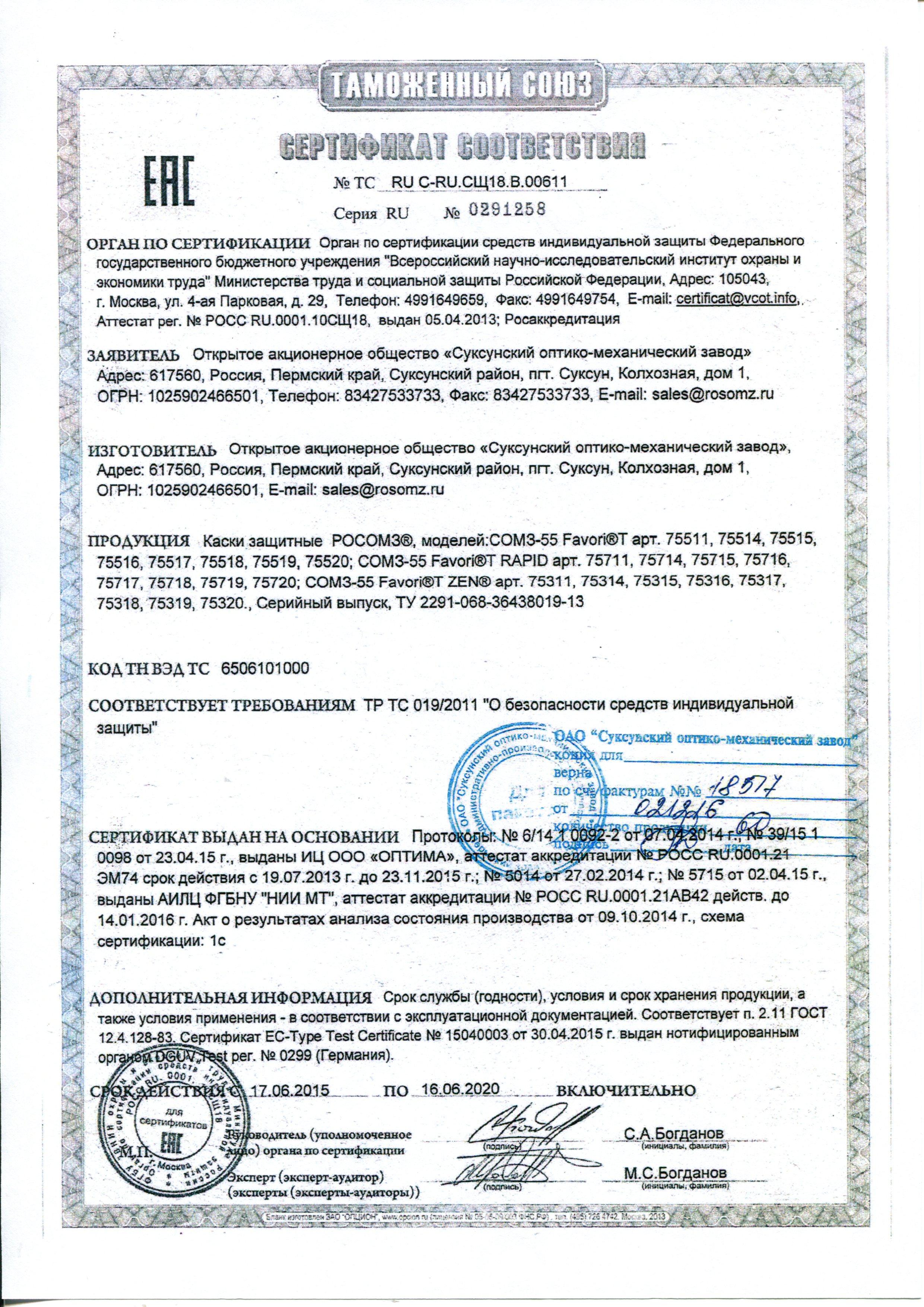 Каска Росомз СОМЗ-55 Favorit Rapid белая (артикул производителя 75717) состоит из ударопрочного корпуса, выполненного из полипропилена, внутренней оснастки Эталон, плавной регулировки Rapid (храповик) и подбородочного ремня. Особенности: — корпус каски с вентиляционными отверстиями, пазами для крепления наушников противошумных и/или щитков защитных лицевых и водосточным желобком имеет суперлегкий вес (240 г), создает высокий уровень комфорта при длительном ношении каски; — наголовная лента состоит из 2-х частей: налобно-височной и затылочной, выполненных из специально разработанных компонентов полиэтилена, устойчивого к воздействию высоких температур, брызг и искр металла, обладающего повышенной эластичностью при минусовых температурах; — налобно-височная эластичная часть оснащена сменным обтюратором из натуральной кожи для впитывания влаги и комфортного прикосновения с кожей человека в любых температурных условиях. Используемая для изготовления обтюратора натуральная кожа обладает рядом преимуществ перед искусственными материалами: она гипоаллергенна, непромокаема, эластична даже в условиях экстремально низких температур, обладает повышенной гигиеничностью, не соскальзывает за счет мягкого и плотного прилегания к коже; — с внутренней стороны затылочной ленты прикреплен мягкий пенополиуретановый обтюратор из дублированной гигиенической хлопковой ткани, что дает дополнительное снижение давления и утомляемости при длительном ношении каски защитной. Хлопковая ткань также исключает вероятность соскальзывания каски с головы пользователя; — подбородочный ремень из эластичной термостойкой ткани; — ГОСТ EN 397-2012; — рабочий диапазон температур −50С +50С. Непревзойденным отличительным преимуществом защитных касок серии СОМЗ-55 Favorit Rapid является уникальная конструкция внутренней оснастки Rapid, которая позволяет плавно подгонять и точно регулировать размер оголовья, надежно фиксировать каску на голове пользователя, исключает вероятность спадывания каски в случаях, когда пользователь вынужден постоянно контролировать рабочий процесс высоко над головой (например на строительных площадках и высотных работах). Внутренняя оснастка разработана с учетом удобства использования с головными уборами (летними, утепленными) и защитными подшлемниками (термостойкими, влагозащитными). В касках защитных основную функцию эффективного гашения удара, распределение силы воздействия удара равномерно по корпусу каски выполняет внутренняя оснастка. Именно поэтому особое внимание специалисты РОСОМЗR при разработке каски защитной СОМЗ-55 Favorit Rapid уделили конструкции, функциональности и материалам из которых изготовлена несущая лента и другие элементы внутренней оснастки Rapid. С наружной стороны лента имеет приспособления-крючки для крепления защитного подшлемника-пелерины Partner. Такое решение позволяет пользователю в случае необходимости удобно, максимально быстро и надёжно закрепить подшлемник Partner под каской защитной. Налобно-височная часть прикреплена к затылочной части с помощью подвижного суперпрочного крепления. Крепление с подвижным механизмом позволяет удобно разместить затылочную ленту в зависимости от физиологических особенностей пользователя. Затылочная лента имеет плавный механизм регулировки затылочной части внутр
