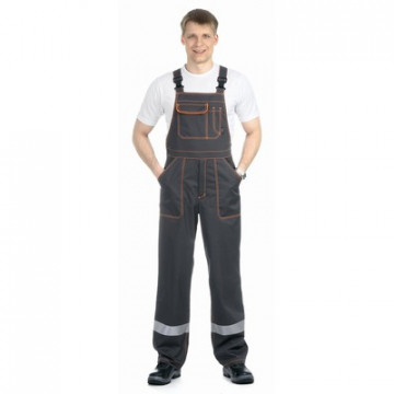 Спецодежда летняя костюм мужской Билд (куртка+полукомбинезон). Размер: 52-54. Рост: 182-188. Удлиненная куртка с потайной застежкой на пуговицы, предотвращающей соприкосновение фурнитуры с оборудованием. Удобные карманы, внутренний карман для документов. На спине кулиска по линии талии. Для регулирования объема. В области подмышечных впадин вентиляционные. Отверстия. Рукава на манжетах. Световозвращающая полоса 3М шириной 5 см и кант обеспечивают хорошую видимость. Полукомбинезон с карманами, сзади накладные карманы и карман для инструментов, на талии эластичная тесьма. Ткань: смесовая с водоотталкивающей отделкой (65% полиэфир, 35% хлопок). Сферы применения: сельское хозяйство, логистика, строительство, озеленение. ГОСТ 12.4.280-2014.