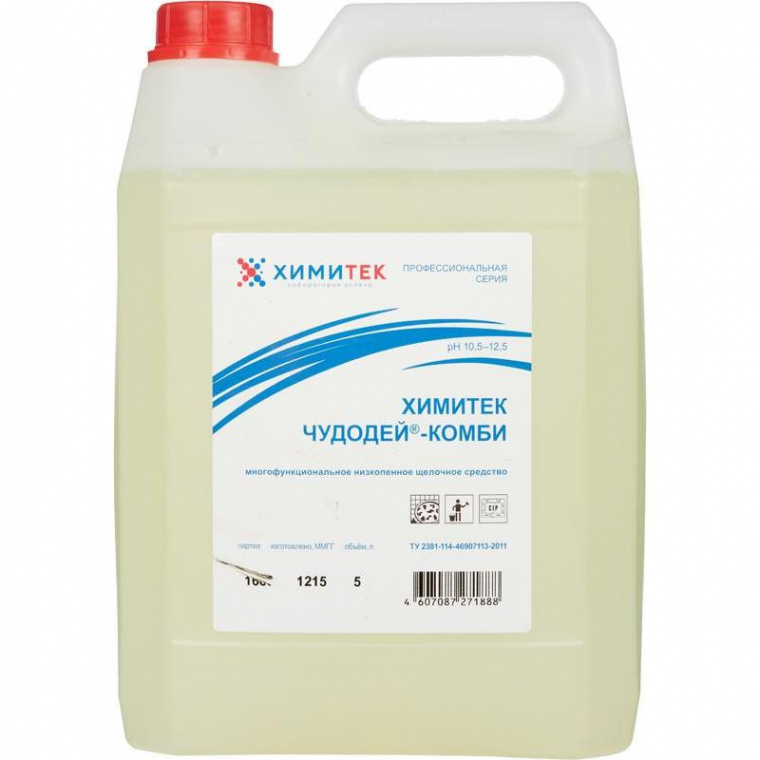 Многофункциональное концентрированное жидкое низкопенное щелочное средство Химитек Чудодей®-Комби