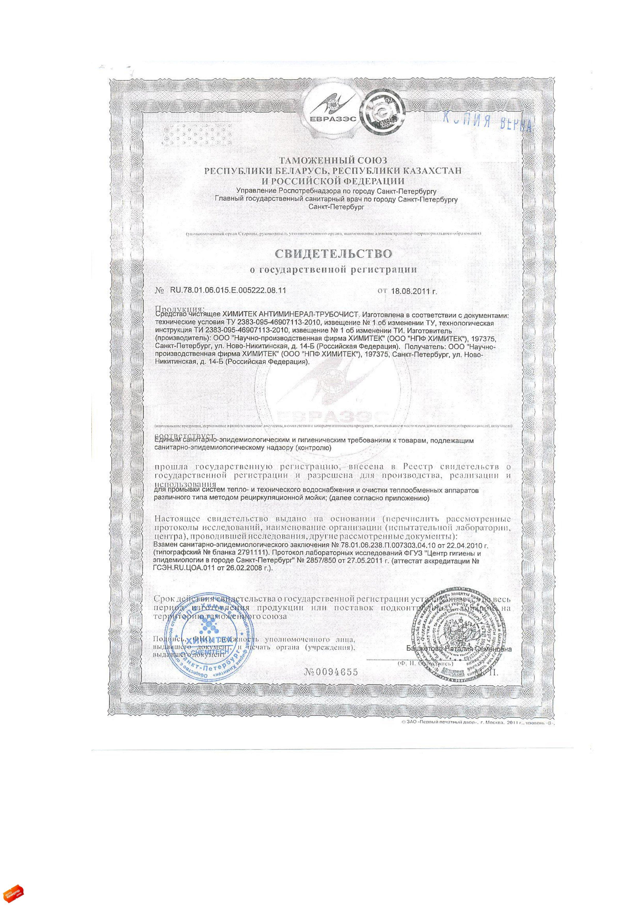 Концентрированное жидкое низкопенное кислотное средство для удаления минеральных отложений и ржавчины Химитек Антиминерал-Трубочист
