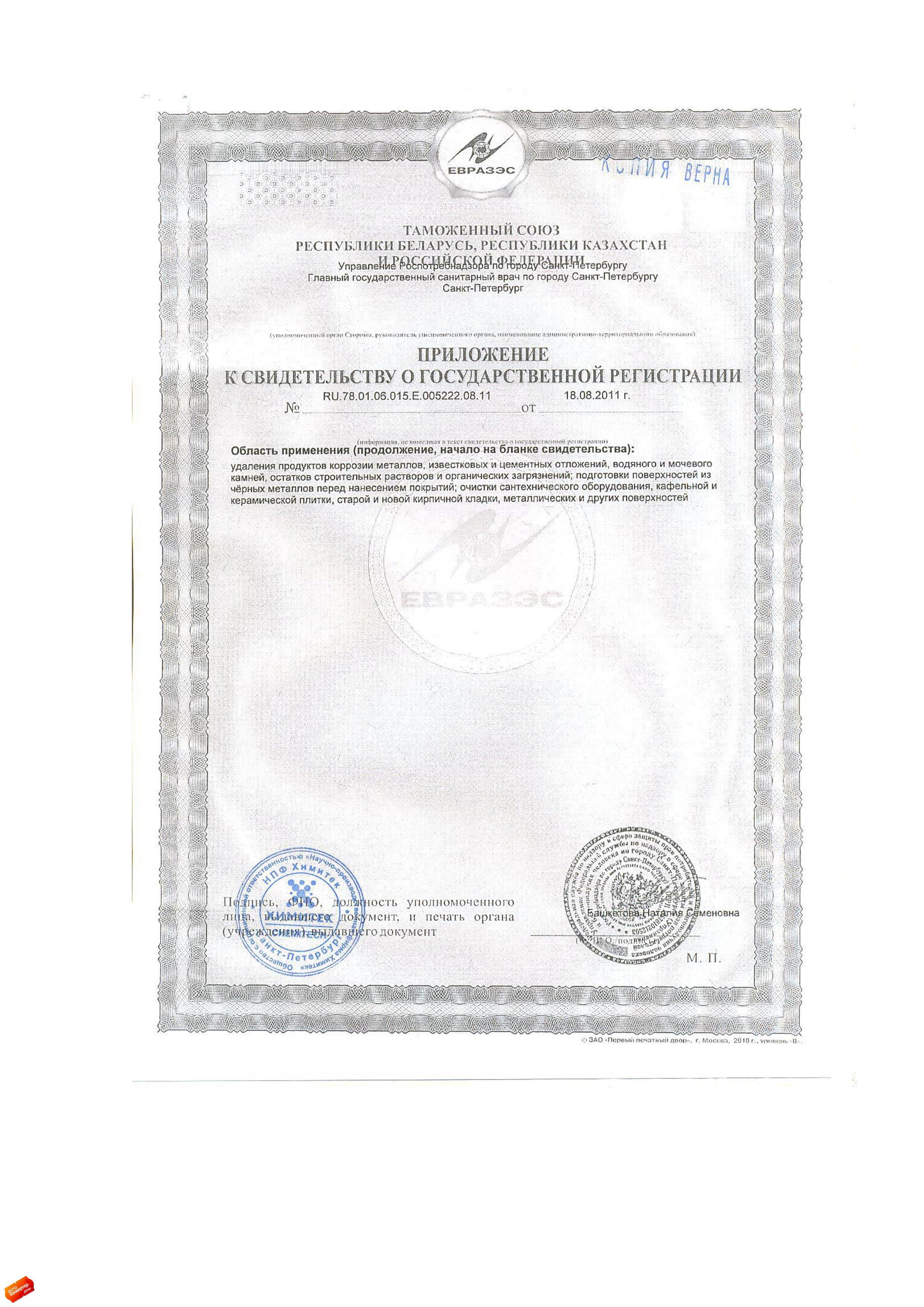 Предназначено для промывки систем тепло- и технического водоснабжения, очистки теплообменных аппаратов различного типа методом рециркуляционной мойки. Удаляет продукты коррозии металлов, известковые и цементные отложения, водяной и мочевой камни, остатки строительных растворов и органические загрязнения. Рекомендуется для подготовки поверхностей из черных металлов перед нанесением гальванических покрытий и порошкового окрашивания. Применимо для очистки сантехнического оборудования, кафельной и керамической плитки, старой и новой кирпичной кладки, металлических и других поверхностей.