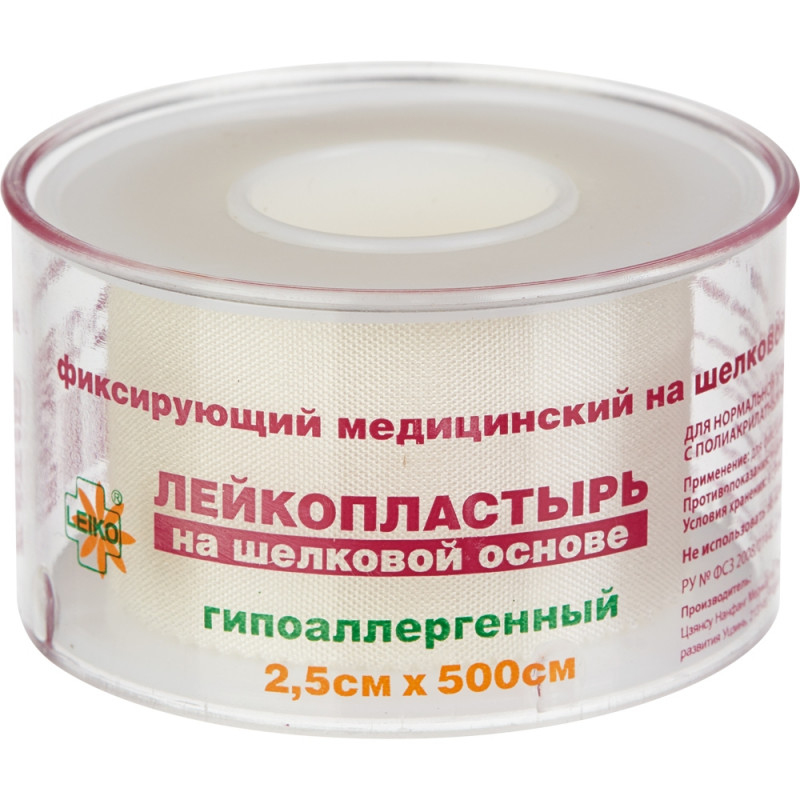 Универсальный прочный гипоаллергенный лейкопластырь. Для нормальной и чувствительной кожи. Может применяться для нежной кожи младенцев и чувствительной кожи людей престарелого возраста. Используется для вспомогательных целей при фиксации компрессов, тампонов, сложных, объемных и плотно прилегающих послеоперационных повязок и покрытий. Применяется для фиксации игл, катетеров, канюль, зондов, трубок, других медицинских устройств. Может использоваться при оказании первой помощи для фиксации поврежденных пальцев и суставов; для временного скрепления краев ранения; после снятия хирургических швов для укрепления сросшихся краев разреза. Полиакрилатный адгезивный слой подходит для нормальной и чувствительной кожи, не вызывая аллергии и раздражения при использовании лейкопластыря, хорошо приклеивается и легко распределяется в месте наложения. Основа из вискозного шелка обладает водоотталкивающими свойствами, хорошо пропускает воздух и влагу, не вызывает мацерации кожи. Характеризуется мягкостью, высокой механической прочностью (благодаря особому плетению и подвижной структуре ткани). Не растягивается. Благодаря зигзагообразному краю, легко отрывается без использования ножниц. Возможно нанесение надписей на поверхность лейкопластыря. Надежно фиксируется, подходит для длительного ношения. Снимается легко, безболезненно, не травмируя кожный покров и не оставляя следов адгезивного слоя на коже. Основа: вискозный шелк Адгезивный слой: полиакрилатный клей Степень адгезии: нормальная Форма выпуска и размеры: катушка в пластиковом пенале 2.5см х 500см
