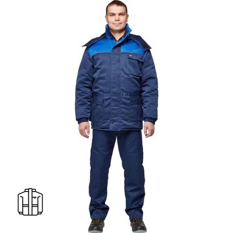 Спецодежда зимняя куртка мужская з08-КУ (размер 56-58, рост 182-188) синего цвета с васильковыми вставками. Изготовлена из смесовой ткани с водоотталкивающей пропиткой (68% полиэфир, 32% хлопок), плотность ткани - 220 г/кв.м. Утеплитель - синтепон, плотность - 200 г/кв.м (2 слоя). Материал подкладки - 100% полиэстер. Куртка с центральной застежкой на молнию, ветрозащитным клапаном. Кокетка полочек и спина отделаны тканью со светоотражающим кантом. На куртке есть два накладных кармана и отстегивающийся капюшон. Куртка обеспечивает защиту от пониженных температур и производственных загрязнений. Рекомендована для использования в сельском хозяйстве, логистике, легкой промышленности, строительстве. ГОСТ 12. 4. 303-2016. Коллекция зимней спецодежды з08 представлена в нескольких цветовых сочетаниях: синий с яркими элементами василькового цвета и и синий с контрастной красной отделкой.