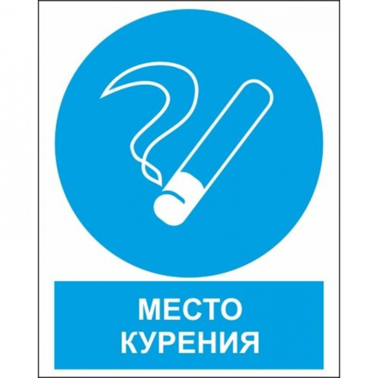 Предписывающий знак безопасности «Место курения» предназначен для обозначения обязательных действий с целью избегания возможных травм и прочих опасностей. Для усиления внимания персонала предписывающий знак выполнен в комбинации с поясняющей надписью.