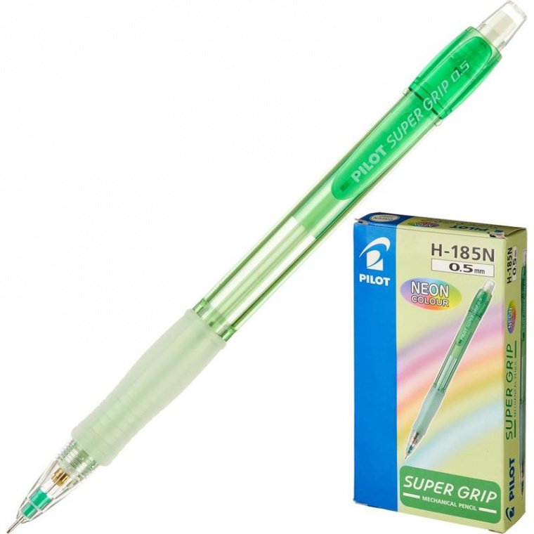 Карандаш механический Pilot Neon H-185-N с толщиной линии письма 0,5 мм. Выполнен в пластиковом корпусе салатового цвета. Обладает резиновой манжеткой и мягким ластиком. Очень удобен в использовании за счет того, что позволяет пальцам принять естественное положение. Сменный стержень для карандаша вы сможете найти во вкладке «Расходные материалы». Страна-производитель — Япония.