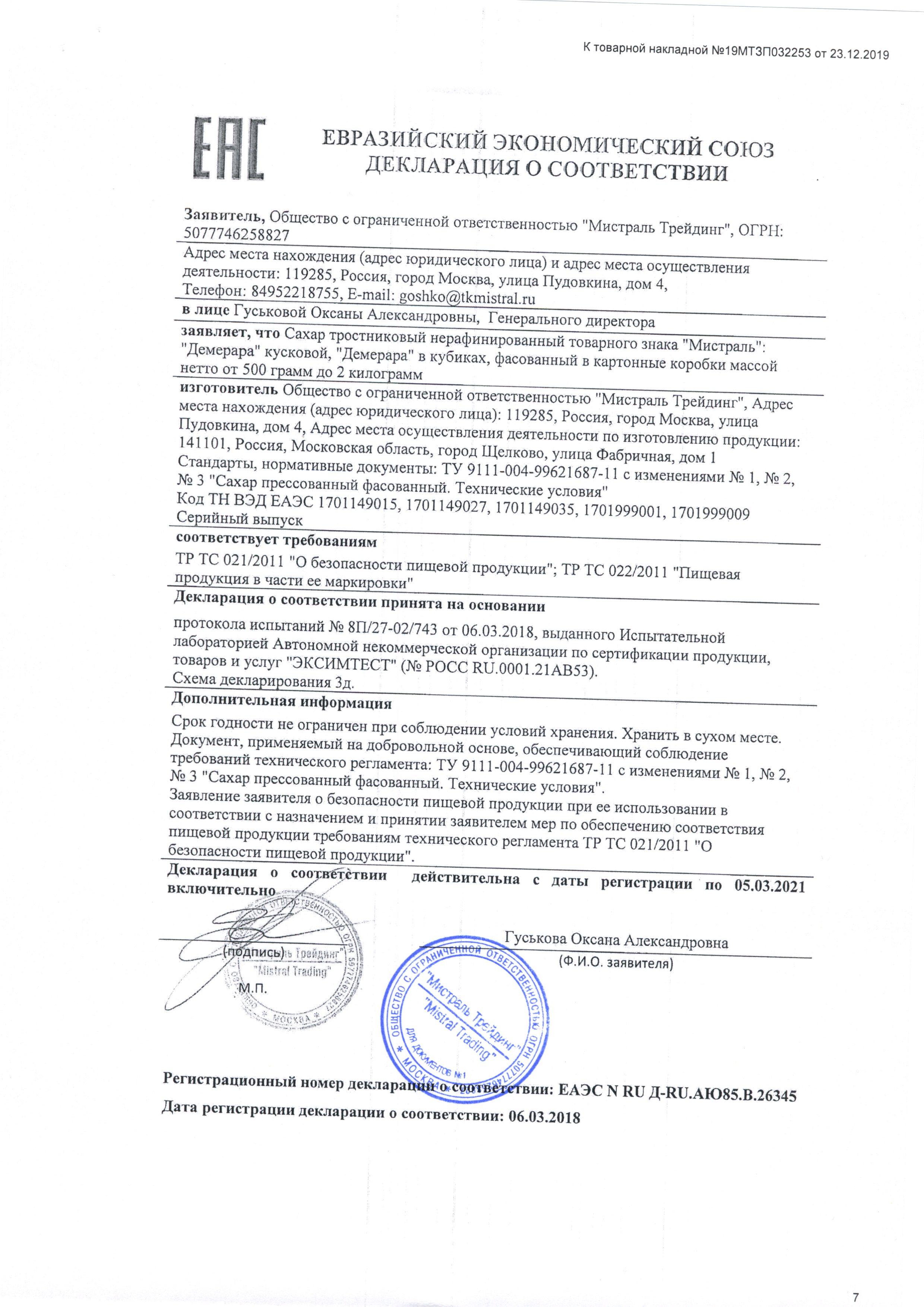 Для производства нерафинированного кускового сахара «Мистраль» использован коричневый тростниковый сахар сорта Демерара. Имеет карамельный аромат, который подчеркивает вкусовую гамму чая и кофе. Расфасован в картонные коробки по 1000 гр.