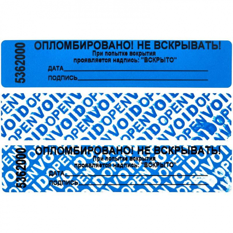 Пломба наклейка 100x20 мм синяя (1000 штук в упаковке)