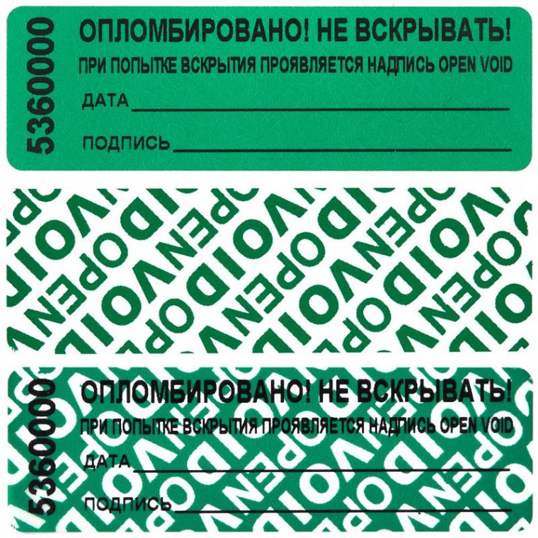 Пломба наклейка 66x22 мм зеленая (1000 штук в упаковке)