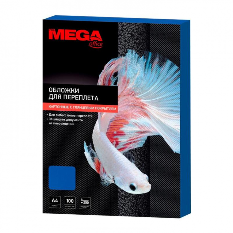 Обложки для переплета картонные Promega office А4 250 г/кв.м синие глянцевые (100 штук в упаковке)