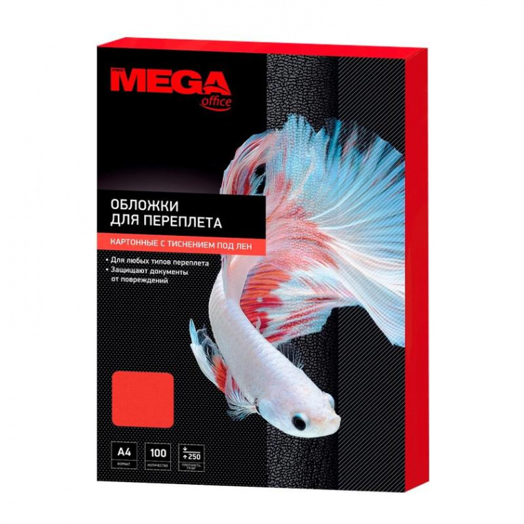 Обложки для переплета картонные Promega office А4 250 г/кв.м красные текстура лен (100 штук в упаковке)