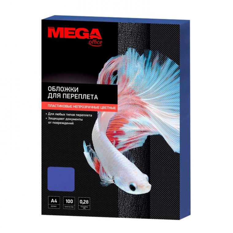 Обложки для переплета пластиковые Promega office A4 280 мкм синие глянцевые (100 штук в упаковке)
