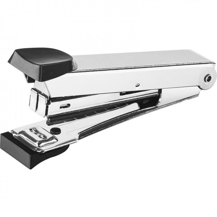 Степлер Moment одновременно сшивает до 10 листов плотностью 80 г/кв.м. Позволяет производить сшивание закрытым способом. Максимальная глубина закладки бумаги составляет 50 мм (5 см). Степлер имеет металлический механизм и корпус серебристого цвета. Оснащен черными пластиковыми ручками для удобного захвата. Оснащен антистеплером. Работает со скобами № 10. Размер изделия: 99×40×25 мм. Вместимость скоб — 50 штук.