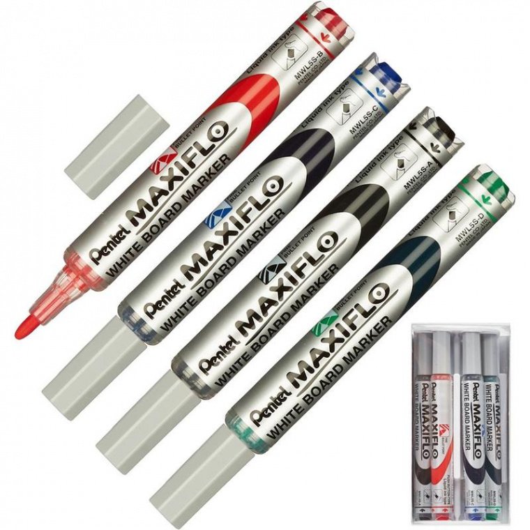 Набор принадлежностей Pentel MWL5S-4N для магнитно-маркерной доски (4 маркера, губка)