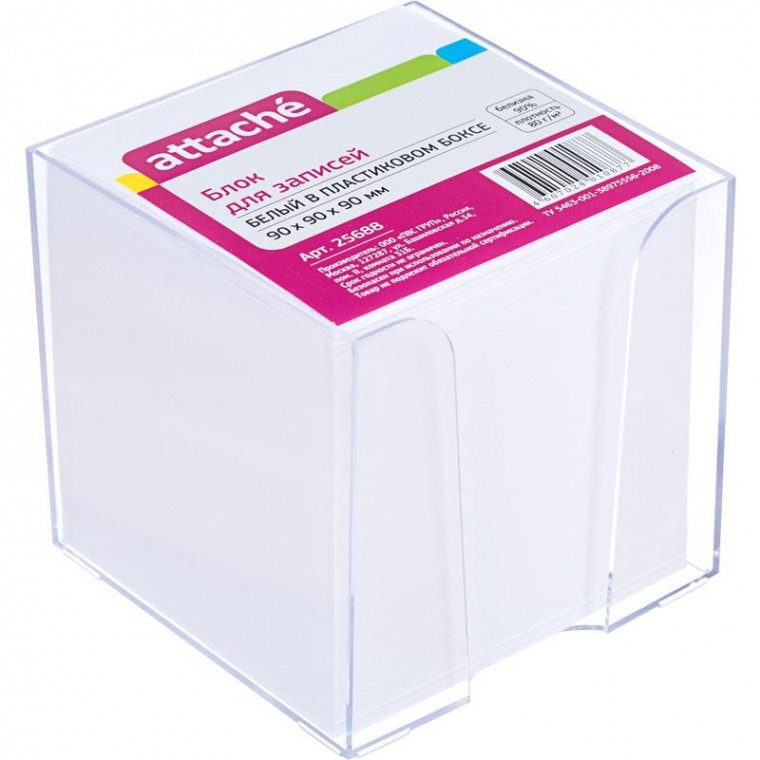 Блок для записей Attache 90x90x90 мм белый в боксе (плотность 80 г/кв.м, белизна 90 процентов)