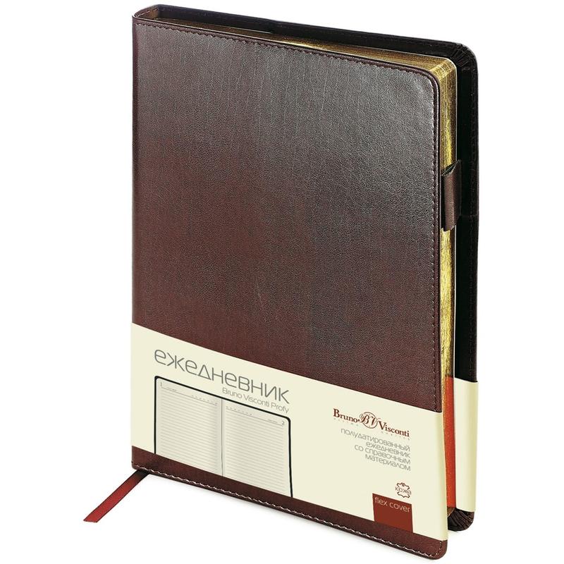 Ежедневник полудатированный Bruno Visconti Profy натуральная кожа А5 208 листов коричневый (золотистый обрез, 152x222 мм)