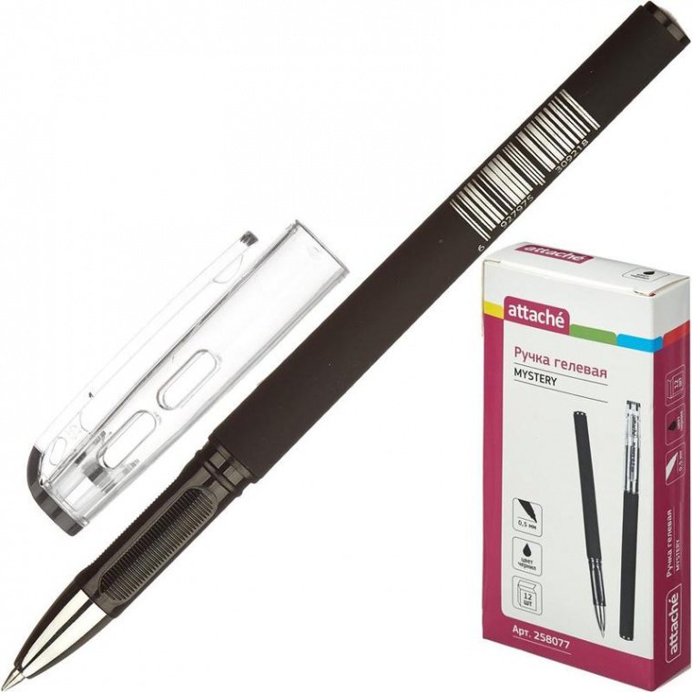 Гелевая ручка Attache Mystery с корпусом из материала, стилизованного под нубук. Конусообразный наконечник. Стержень с чернилами черного цвета, толщина линии — 0,5 мм. Ручка обеспечивает легкое и мягкое письмо, яркие и насыщенные линии. Чернила быстро высыхают, не размазываются.