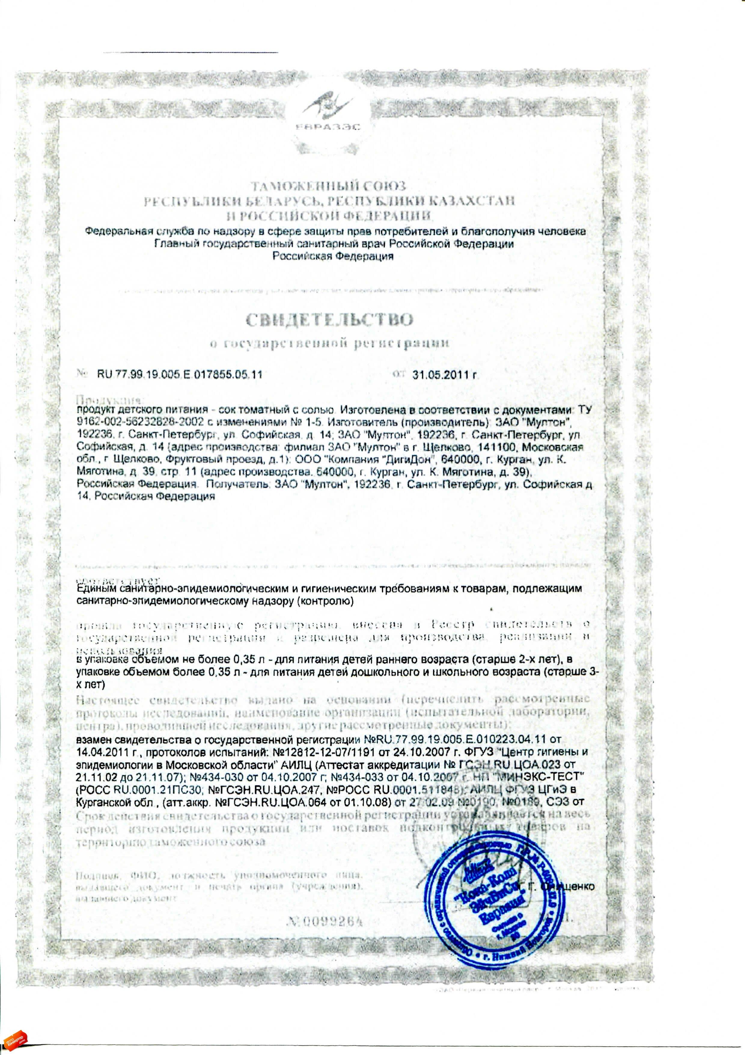 Хранить при температуре от 0 °С до 25 °С. Производитель: ЗАО Мултон. Страна производства: Россия.