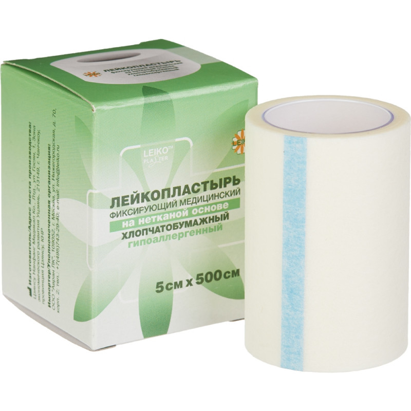 Гипоаллергенный лейкопластырь на нетканой (целлюлозной) основе для нормальной и чувствительной кожи. Может применяться для нежной кожи младенцев и чувствительной кожи людей престарелого возраста. Используется во вспомогательных целях при фиксации прилегающих необъемных повязок и покрытий на чувствительных участках кожи (включая повязки на лице и в области глаз). Применяется для крепления на теле катетеров, зондов, трубок, других медицинских устройств. Лейкопластырь при необходимости может использоваться для неотложной помощи при мелких повреждениях, царапинах, для защиты места вкола после инъекции (особенно подходит для чувствительной кожи). Рекомендуется для использования у пациентов, проходящих курс радиационной терапии. Полиакрилатный адгезивный слой подходит для нормальной и чувствительной кожи, не вызывая аллергии и раздражения при использовании лейкопластыря, хорошо приклеивается и легко распределяется в месте наложения. Микропористая структура основы лейкопластыря пропускает воздух и влагу, позволяя коже , не вызывая мацерации. Нетканый материал основы прозрачен для радиолучей. В любом направлении легко отрывается без использования ножниц (легкофрагментируемый). Возможно нанесение надписей на поверхность лейкопластыря. Снимается легко, безболезненно, не травмируя кожный покров и не оставляя следов адгезивного слоя на коже. Основа: микропористая нетканая целлюлоза Адгезивный слой: полиакрилатный клей Степень адгезии: нормальная Форма выпуска и размеры: катушка в индивидуальной картонной упаковке 5см х 500см