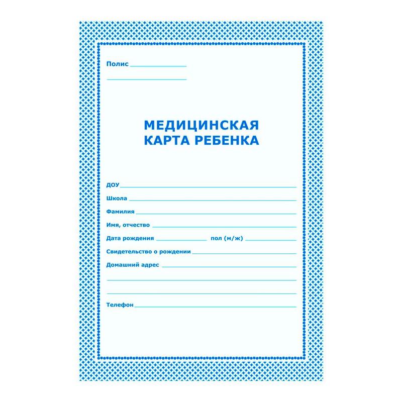 Медицинская карта ребенка голубая А4 по форме N026/У-2000