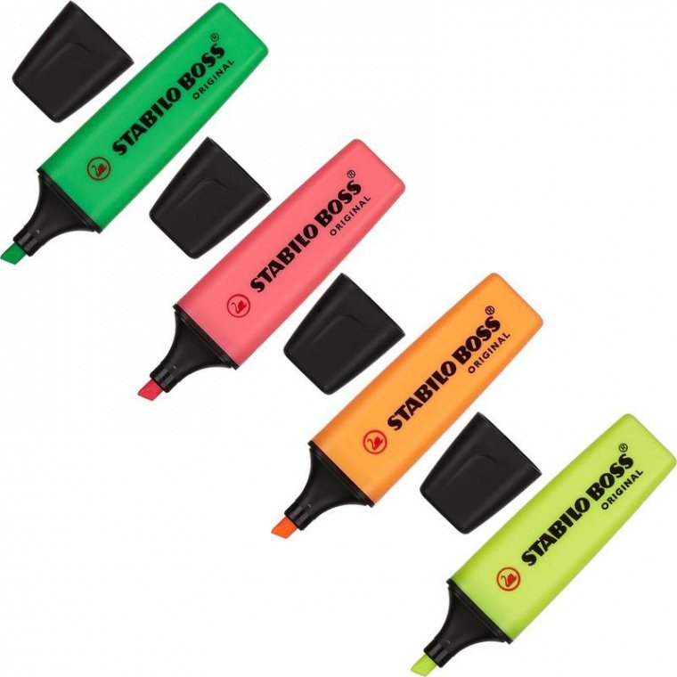 Набор текстовыделителей Stabilo Boss 70/4 (толщина линии 2-5 мм, 4 цвета: зеленый, розовый, оранжевый, желтый)