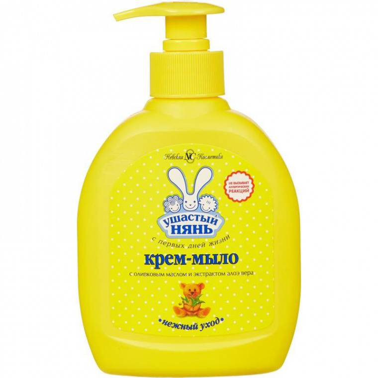 Жидкое гипоаллергенное крем-мыло для детей ’Ушастый нянь’ содержит оливковое масло и экстракт алоэ вера, благодаря которым смягчает, увлажняет и питает кожу, а также полностью уничтожает бактерии. Протестировано дерматологами, соответствует всем требованиям к качеству и разрешено к использованию с первых дней жизни детей. Жидкое мыло с мягкой отдушкой легко смывается, не имеет в составе агрессивных моющих веществ.