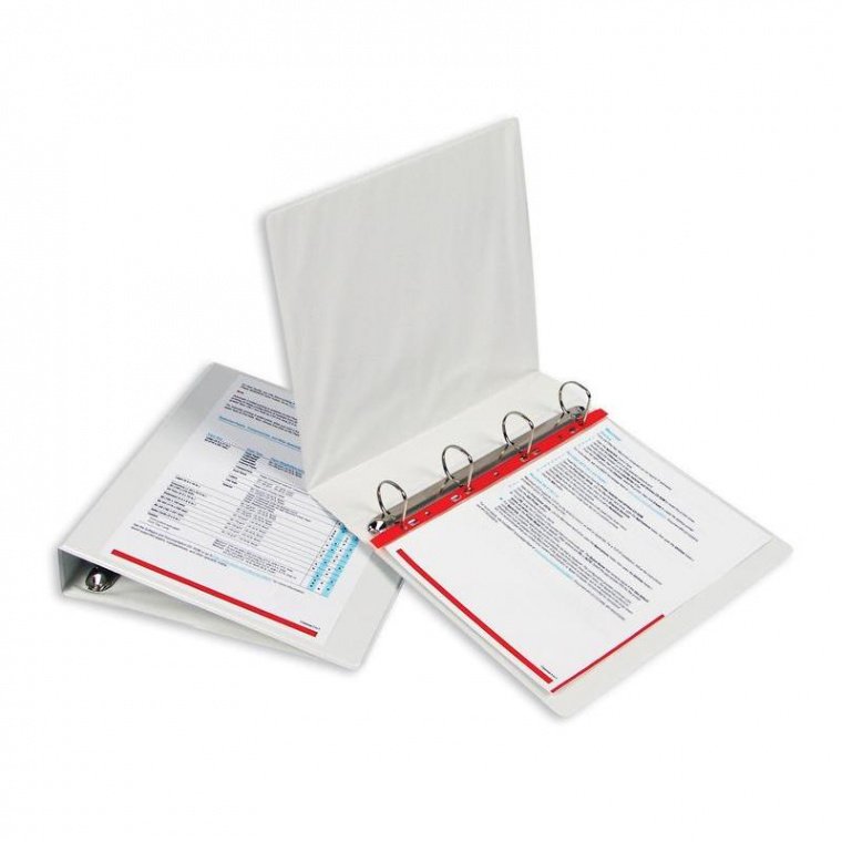 Папка Панорама изготовлена из прочного картона толщиной 1,9 мм, покрытого с двух сторон пленкой ПВХ белого цвета. Формат А4, ориентирован вертикально. Оснащены механизмом на четырех D-образных кольцах, диаметром 35 мм. Вмещают до 300 листов стандартной плотности. Корешок шириной 50 мм имеет прозрачный карман для сменной этикетки. На лицевой и оборотной сторонах папки для презентаций расположены карманы А4 для размещения титульного листа и прочей информации. На внутренней стороне обложки — карман для документов.