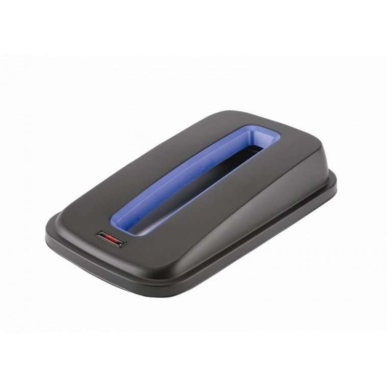 Особенности и преимущества: • подходит для контейнеров ГЕО 55 и 70 л.; • гладкая поверхность для легкой очистки; • скрывает пакет для мусора; • имеет узкое отверстие для бумаг; • также доступны крышки с ручкой и с круглым отверстием для бутылок. Высота: 9 см Размер: 49×29 см Материал крышки — полипропилен, вставка — ударопрочный технический термопласт (АБС). Допустимый температурный диапазон эксплуатации: от −15 до +130 °C. Цвет: черный/синий. Вес: 420 г.