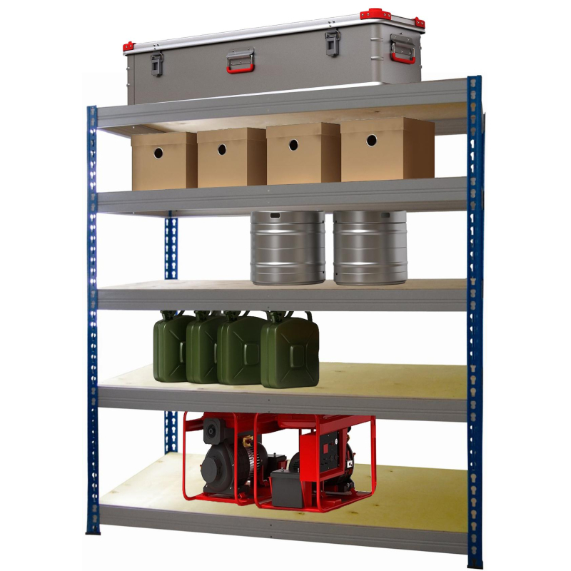 Стеллаж металлический МКФ18615-2.5 грузовой (5 полок). Стеллаж сборно-разборный, средней грузоподъемности. Предназначен для хранения объемных товаров в закрытых помещениях (торговых залах, бытовках, складах). Возможно использовать и для хранения автомобильных колес от 15 радиуса и выше. Конструкция стационарная, из четырех стоек, продольных и поперечных балок, на которых размещается настил из фанеры. Сборка стеллажей производится быстро и легко - без дополнительных крепежных элементов. Комплектуется пластиковыми подпятниками, предохраняющими пол от повреждений. Тип материала стоек - высокопрочная сталь. Тип материала полок - фанера 10 мм. Количество полок - 5. Шаг перфорации для крепления полок - 50 мм. Распределенная нагрузка на полку - 300 кг. Максимальная нагрузка на стеллаж - 1500 кг. Тип покрытия стоек - порошковое, цвет стоек - синий, цвет полок - натуральное дерево. Внимание! Максимальное расстояние от пола до первой полки - не более 150 мм. Дополнительные элементы (разделители, ограничители), а также папки в комплект стеллажа не входят и заказываются отдельно. Изображения товаров на сайте не могут гарантировать точную цветопередачу.