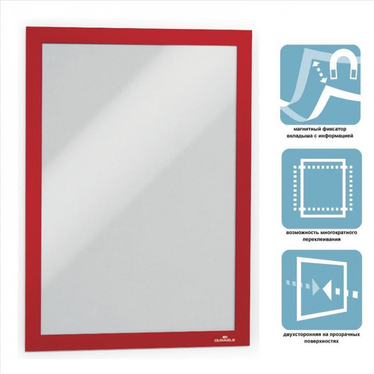 Не использовать под прямыми солнечными лучами! Возможна деформация продукта. Для солнечной стороны выбирайте Duraframe Sun. Комплект настенных магнитных рамок на самоклеящейся основе. Цвет: Красный Магнитные рамки крепятся на любую ровную, гладкую поверхность с возможностью многократного переклеивания. Не оставляет клейких следов. Магнитная рамка позволяет быстро осуществлять замену информации. Продается упаковками по 2 штуки.