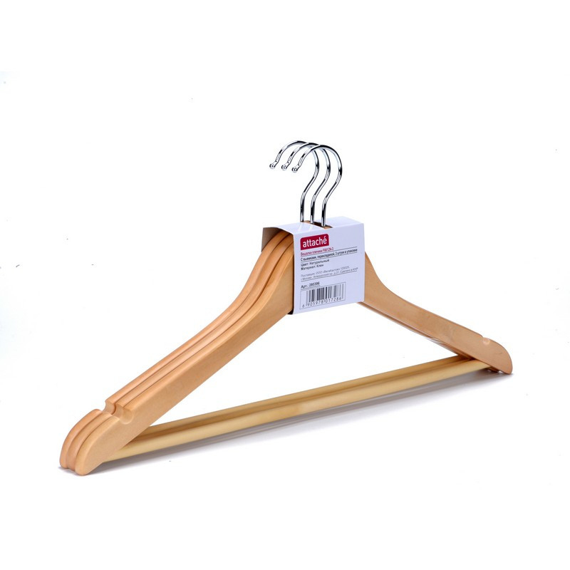 Вешалка-плечики размера 48-50 - Jas Attache F6612N изготовлена из натуральной древесины (клен), с перекладиной для брюк, юбок и выемками. Размер (мм): Ш235хВ40хД450. Поставляется по 3 штуки в упаковке.Изображения товаров на сайте не могут гарантировать точную цветопередачу.