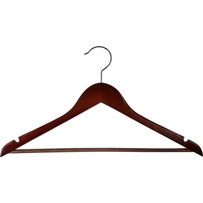 Вешалка-плечики размера 48-50 Jas Attache F6612NJ изготовлена из натуральной древесины (лотос) с антискользящими вставками, выемками и перекладиной для брюк, юбок. Поставляется по 3 штуки в упаковке.Изображения товаров на сайте не могут гарантировать точную цветопередачу.
