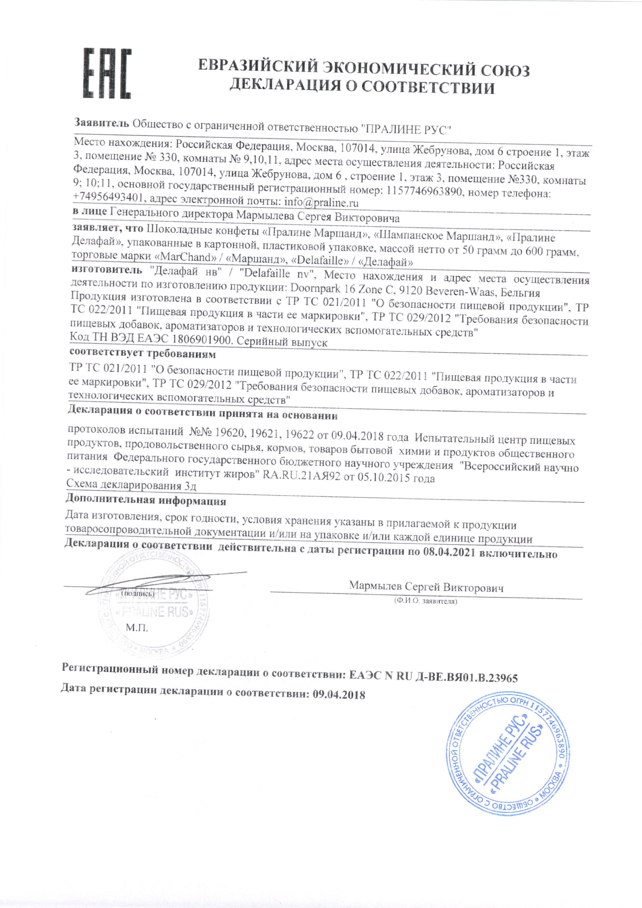 Сертификат на товар - Подарочный набор шоколадных конфет MarChand Пралине 200 г