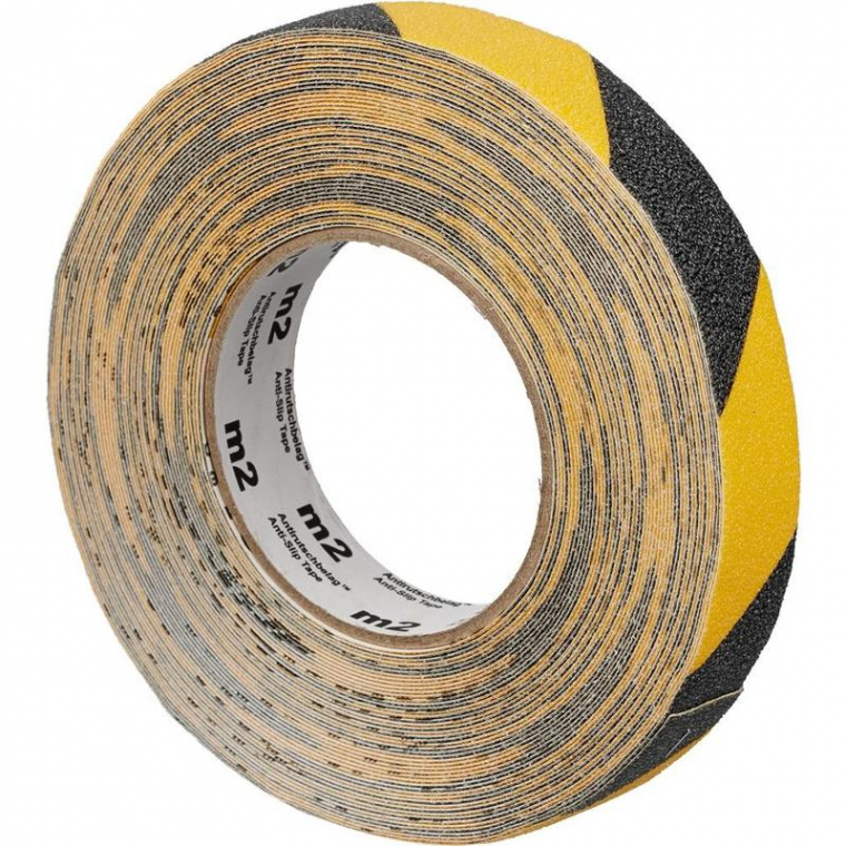 Лента противоскользящая Мельхозе 25 мм х 18.3 м желто-черная. Противоскользящее покрытие с зерном из оксида алюминия, основа из ПВХ, самоклеящаяся сторона с защитной лентой для защиты клеевого слоя, акриловый клеевой слой, толщина без защитной пленки Свойства:
