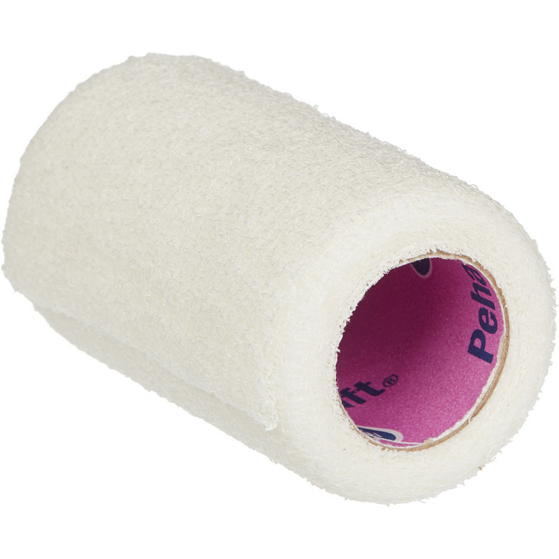 Незаменим для фиксирующих повязок всех видов, особенно на суставах или частях тела, имеющих коническую или округлую форму. За счет когезивных свойств обеспечивает экономный расход бинта, несколько витков обеспечат вам надежную фиксацию на длительный срок. Не требует завязывания, обладает двойным эффектом сцепления, экономный расход материала за счет клеящих свойств: уже несколько витков обеспечивают надежную фиксацию на длительный срок. Бинт не приклеивается к коже, волосам или одежде, не раздражает кожу, устойчив к стерилизации; не содержит латекс. Растяжимость 85%. Состав: 43% вискоза, 20% полиамид, 37% хлопок, без латекса