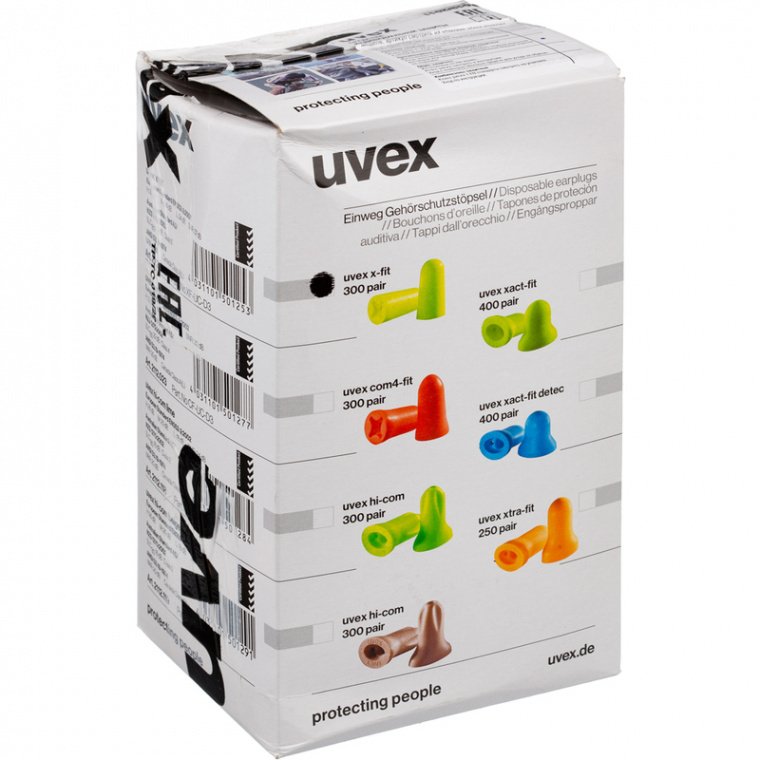 Одноразовые противошумные вкладыши Uvex «Икс-фит» (2112.003) для диспенсера, 300 пар. Одноразовые беруши из вспененного полиуретана имеют эргономичную форму и обладают высокой степенью поглощения шума. Беруши имеют специальную поверхность, предотвращающую попадание в ушной канал инородных тел. Инновационное основание повышает удобство при использовании и снижает давление на ушной канал. Упакованы в коробку и специально предназначены для наполнения диспенсера. Имеют яркую сигнальную окраску. Снижение уровня шума на 37 дБ. Диспенсер для беруш — арт. 290419.
