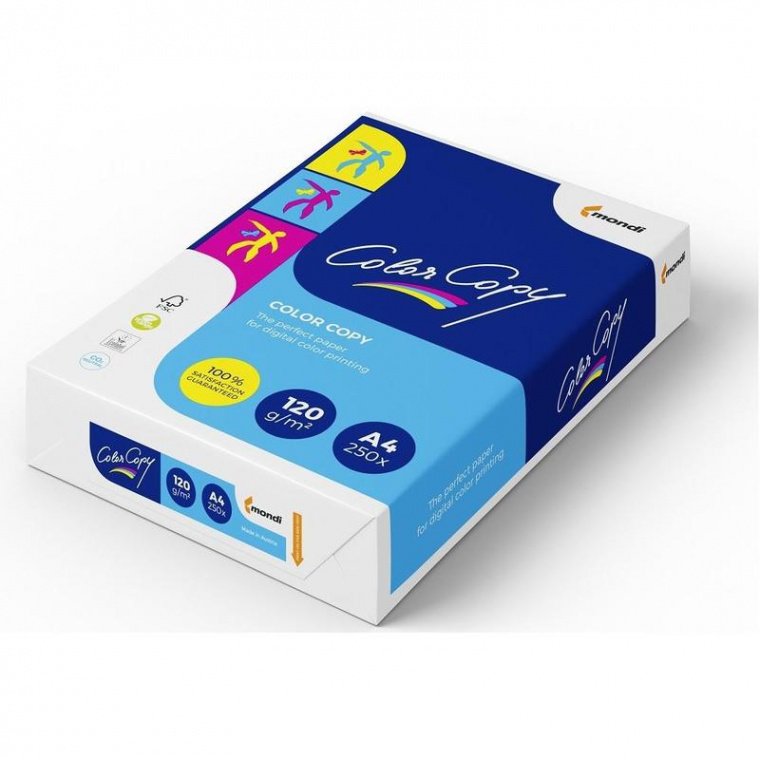 Матовая бумага Color Copy формата А4 предназначена для печати на монохромных и цветных лазерных принтерах, на цветных копировальных аппаратах и на цифровых печатных устройствах. Плотность бумаги составляет 120 г/кв.м, высокая степень белизны — 161%. Поверхность гладкая, с однородной структурой. Пачка содержит 250 листов.
