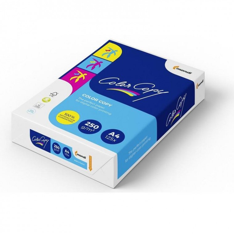 Матовая бумага Color Copy формата А4 предназначена для печати на монохромных и цветных лазерных принтерах, на цветных копировальных аппаратах и на цифровых печатных устройствах. Плотность бумаги составляет 250 г/кв.м, высокая степень белизны — 161%. Поверхность гладкая, с однородной структурой. Пачка содержит 125 листов.