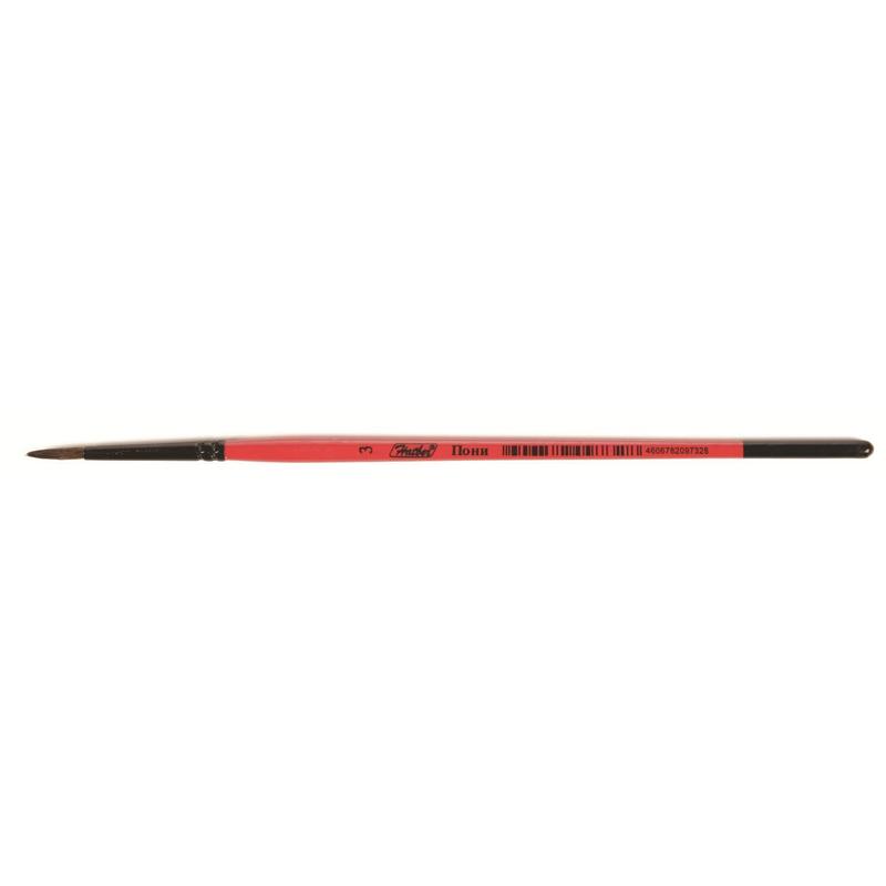 Кисть Hatber пони круглая № 3. Наконечник круглой формы изготовлен из мягкого волоса пони, обеспечивает плавность и равномерность нанесения. Кисти с ворсом из волоса пони особенно рекомендуются начинающим художникам, так как такой наконечник обладает отличной впитывающей способностью, что облегчает решение практических задач автора. Одной кистью № 3 можно рисовать целую картину - сделать заливку фона кистью 'плашмя', а острым кончиком нарисовать детали. Кисть имеет короткую (17.04 см), деревянную ручку, покрытую лаком. Ручка кисти оснащена защитным колпачком. Кисть предназначена для работы акварелью, гуашью, акрилом. Поставляется без упаковки.