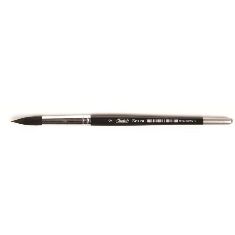 Кисть Hatber белка круглая № 9. Волос белки чрезвычайно мягкий и упругий, прекрасно набирает воду и краску, хорошо отдает ее на бумагу, при этом не 'полосит' и не портит ее. Кисти применяются в акварельной живописи по бумаге и в живописи по фарфору. Одной кистью № 9 можно рисовать целую картину - сделать заливку фона кистью 'плашмя', а острым кончиком нарисовать детали. Кисть имеет короткую (18.75 см), деревянную ручку, покрытую лаком. Ручка кисти оснащена защитным колпачком. Поставляется без упаковки.