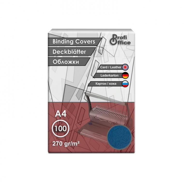 Обложки для переплета картонные ProfiOffice A4 270 г/кв.м синие текстура кожа (100 штук в упаковке)