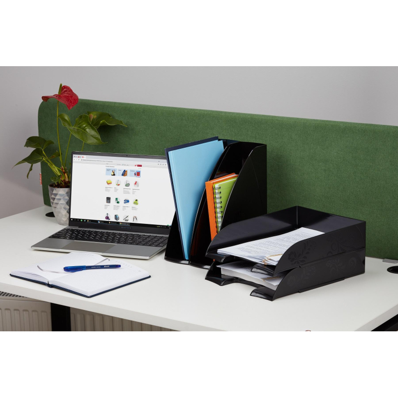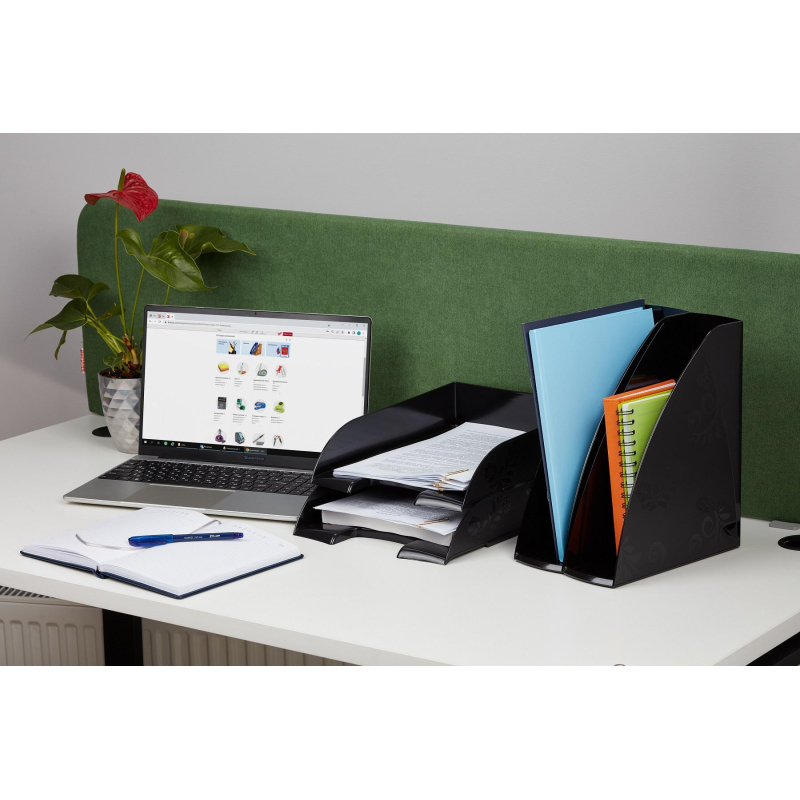 Вертикальный накопитель Комус Русская серия выполнен из черного пластика. Оригинальный дизайн лотка освежит Ваш рабочий стол. Накопитель позволяет удобно хранить документы и печатную продукцию формата А4. Не занимает много места на рабочем столе. Имеет 1 отделение шириной 85 мм. Размеры изделия (ДxШxВ): 235x85x288 мм. Вес: 289 г. Обладает устойчивой конструкцией, благодаря которой является удобным для хранения объемных документов. Сочетается с другими изделиями коллекции Русская серия. Этикетки для маркировки в комплект поставки не входят. Товар поставляется в собранном виде.