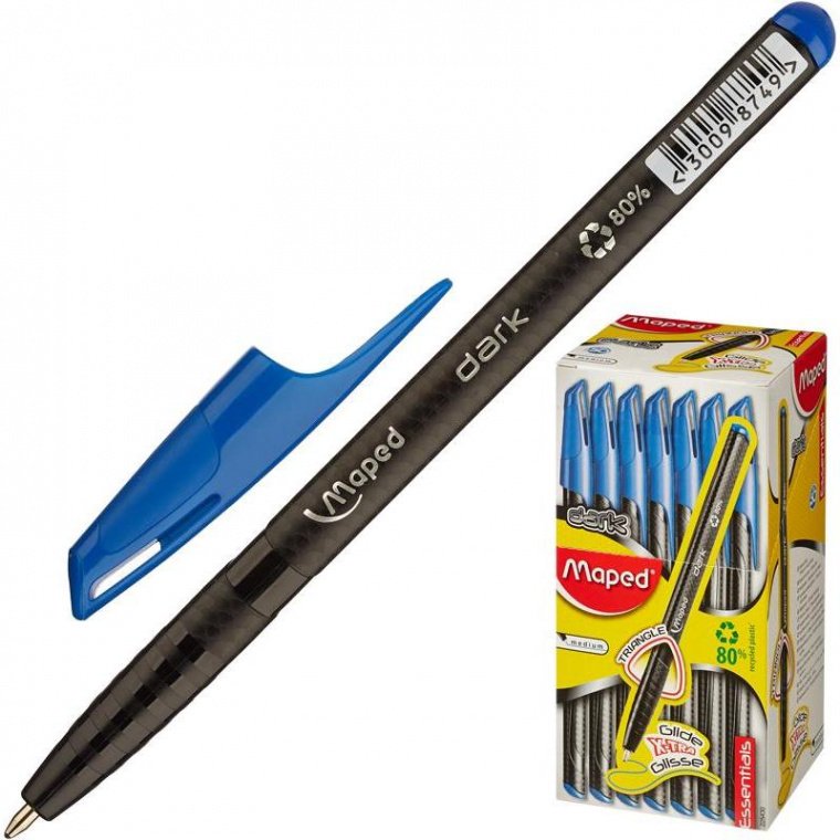Шариковая ручка Maped Green Dark. Модель в корпусе треугольной формы выполнена с имитацией карбонового покрытия. Снабжена плотно сидящим колпачком в цвет чернил. Одноразовый стержень ручки с маловязкими чернилами синего цвета, не оставляющими помарок на бумаге. Письмо мягкое и плавное. Толщина линии при письме составляет 0,6 мм.