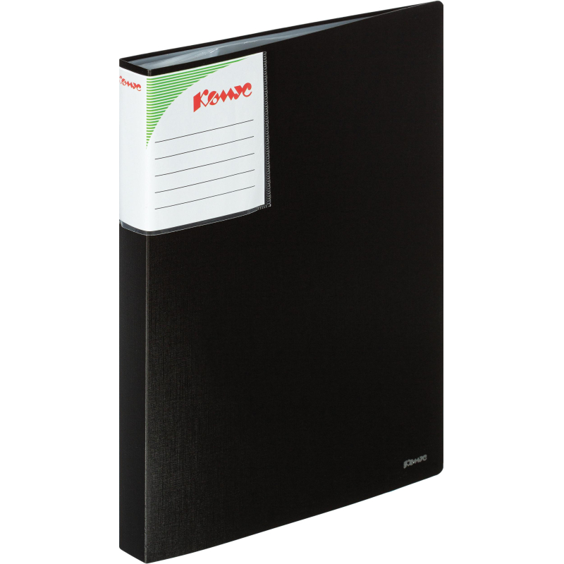 Папка с файлами "Комус" из коллекции "Шелк" выполнена из пластика черного цвета толщиной 0,7 мм. Имеет 40 прозрачных файлов для хранения и демонстрации документов. На корешке предусмотрен прозрачный карман с вкладышем для маркировки, на внутренней стороне створки - дополнительный карман для записок, сим-карт, компакт-дисков. Файловая папка вмещает до 80 листов формата А4.
