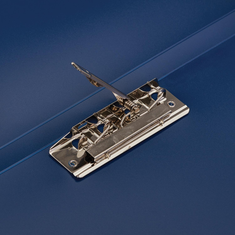 Папка с прижимным механизмом используется для удобного хранения и перемещения документов. Механизм надежно удерживает документы, избавляя от необходимости прокалывать их дыроколом для подшивки. Папка изготовлена из пластика толщиной 0,7 мм. Внутри на обложке имеется карман для документов. Формат А4. Вмещает до 150 листов стандартной плотности. На корешке есть карман для маркировочной этикетки. Цвет папки - синий.