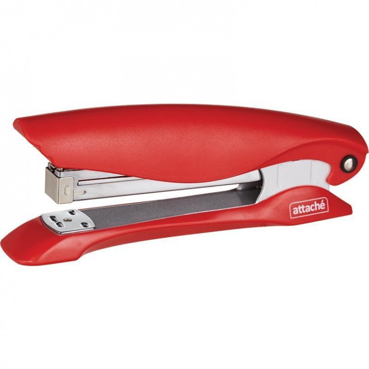 Степлер средний Attache одновременно сшивает до 20 листов плотностью 80 г/кв.м. Позволяет производить сшивание открытым и закрытым способом. Оснащен функцией плоского сшивания, позволяющей до 30% уменьшить толщину документов. Глубина закладки бумаги — 90 мм (9 см). Модель оснащена встроенным антистеплером. Корпус выполнен из пластика красного цвета. В степлере используются скобы № 24/6, 26/6. Размер изделия: ДхШхВ 170×63×36 мм. Вместимость скоб — 24/6 (150 шт.), 26/6 (210 шт.)